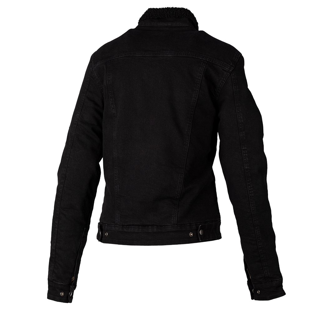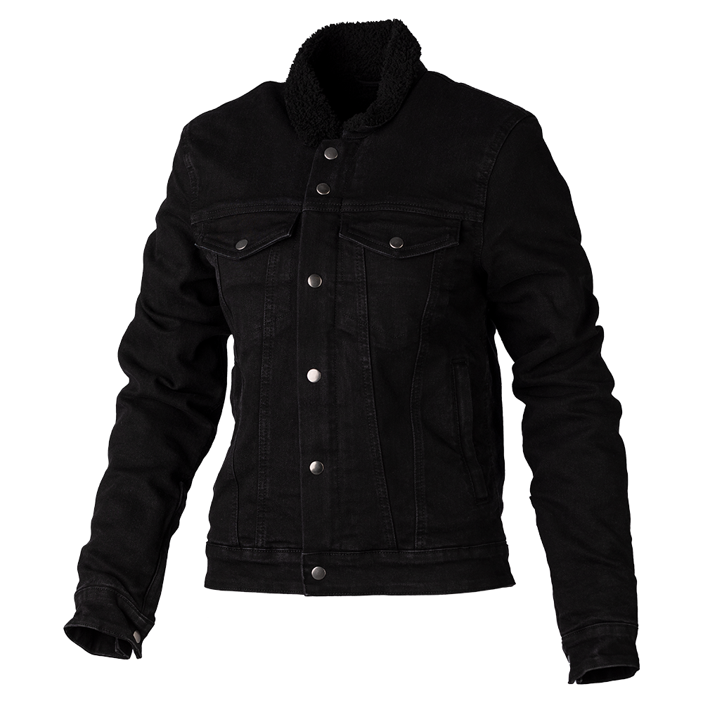 A classically styled denim garment, backed with aramid fibres and lined with Sherpa fleece on the inside. With CE approved armour at the shoulders and elbows, a true biker jacket with a real fashion style.